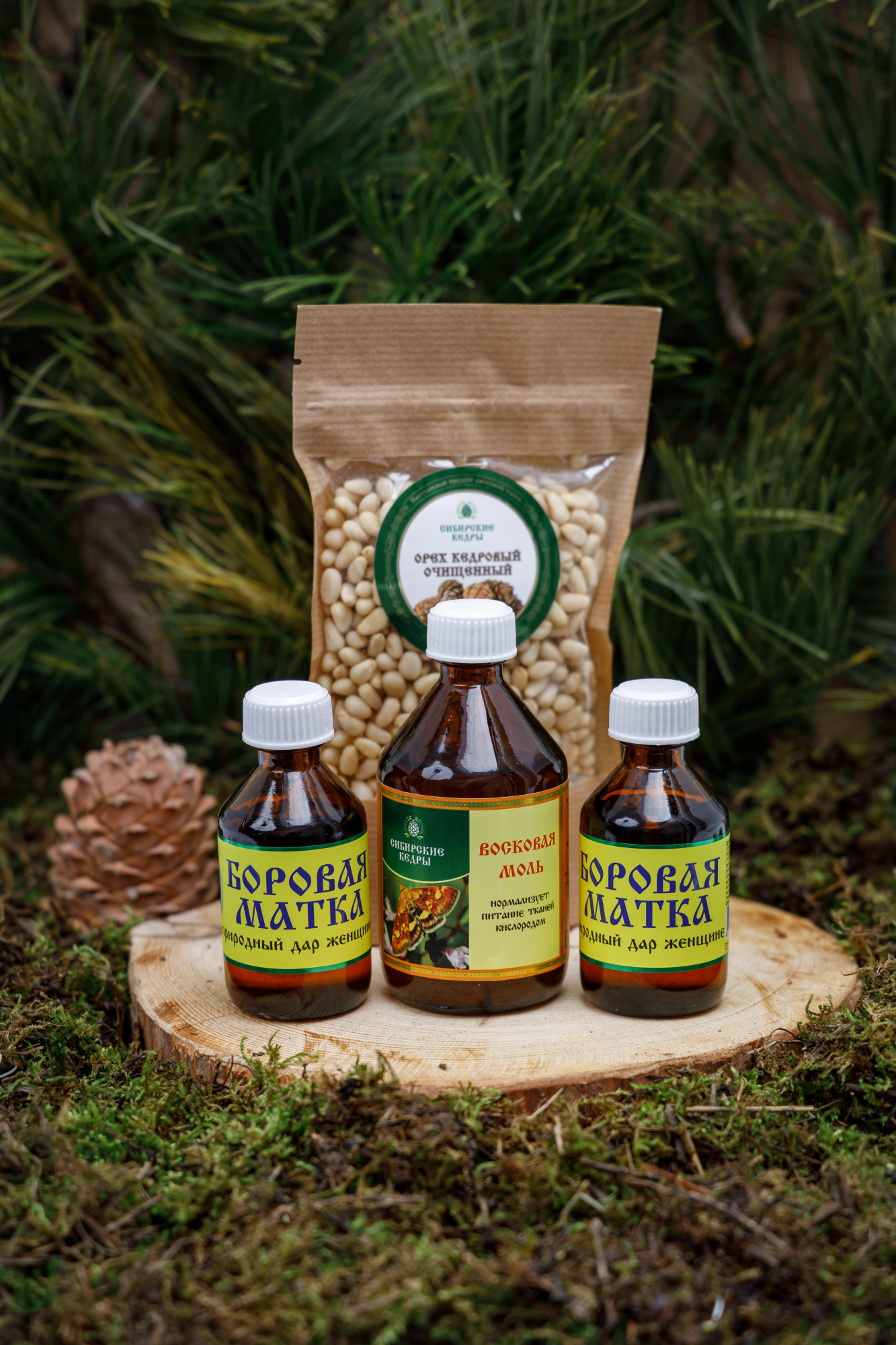 Состав Боровая матка: масло корней ортилии однобокой (боровая матка), облепиховое масло, живица кедроваяСостав Огневка: экстракт восковой моли: ферменты цераза, липаза; комплекс аминокислот: цинк, магний, аланин, арганин, аспарагин, глицин, пролин, тирозин; основа смола кедра 10 % концентрации, масло кедра.