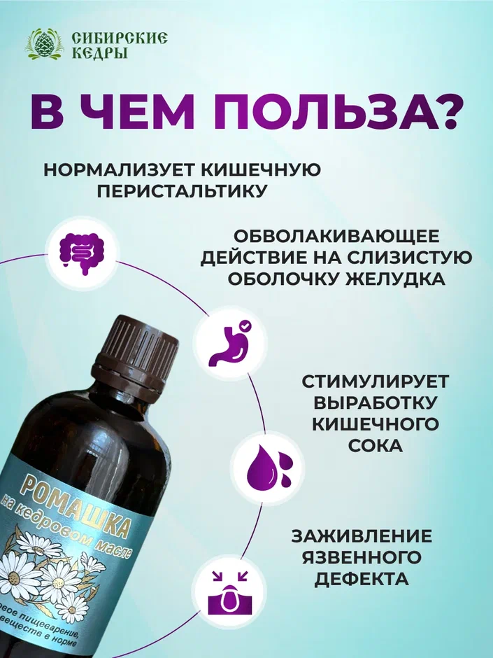 Состав масляная вытяжка ромашки аптечной, календулы, пижмы, крапивы, мелиссы, кедровое масло, экстракт овса, плоды шиповника, оливковое масло, живица кедровая 5%